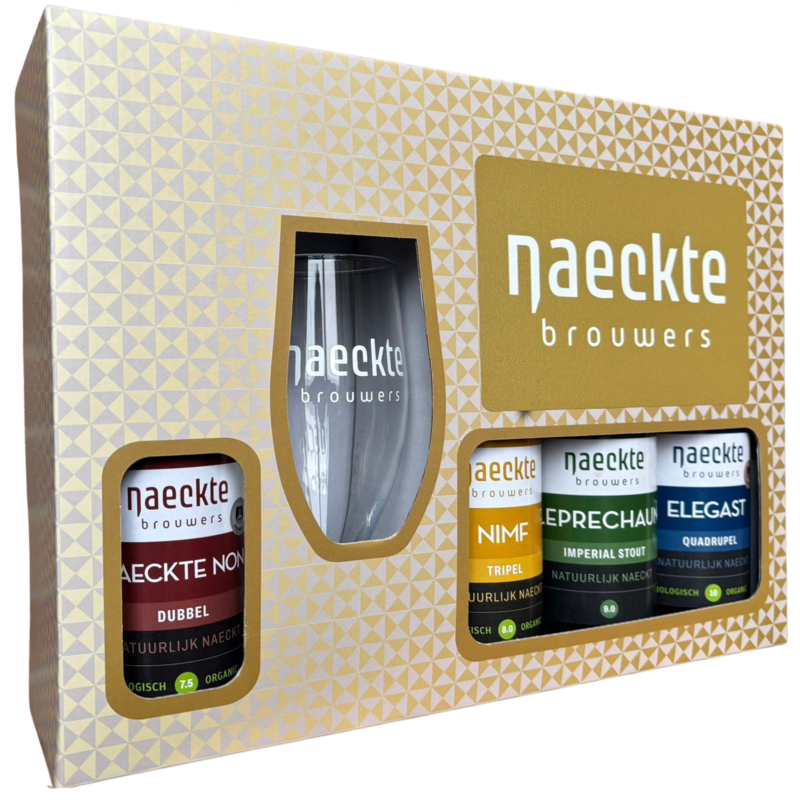 Het ideale Sint- of Kerstcadeau voor de echte biergenieter. In deze luxe cadeauverpakking zitten 4 verwarmende bieren die perfect bij het huidige seizoen passen en het originele Naeckte Brouwers tulpglas om thuis te genieten terwijl het buiten koud en guur is!